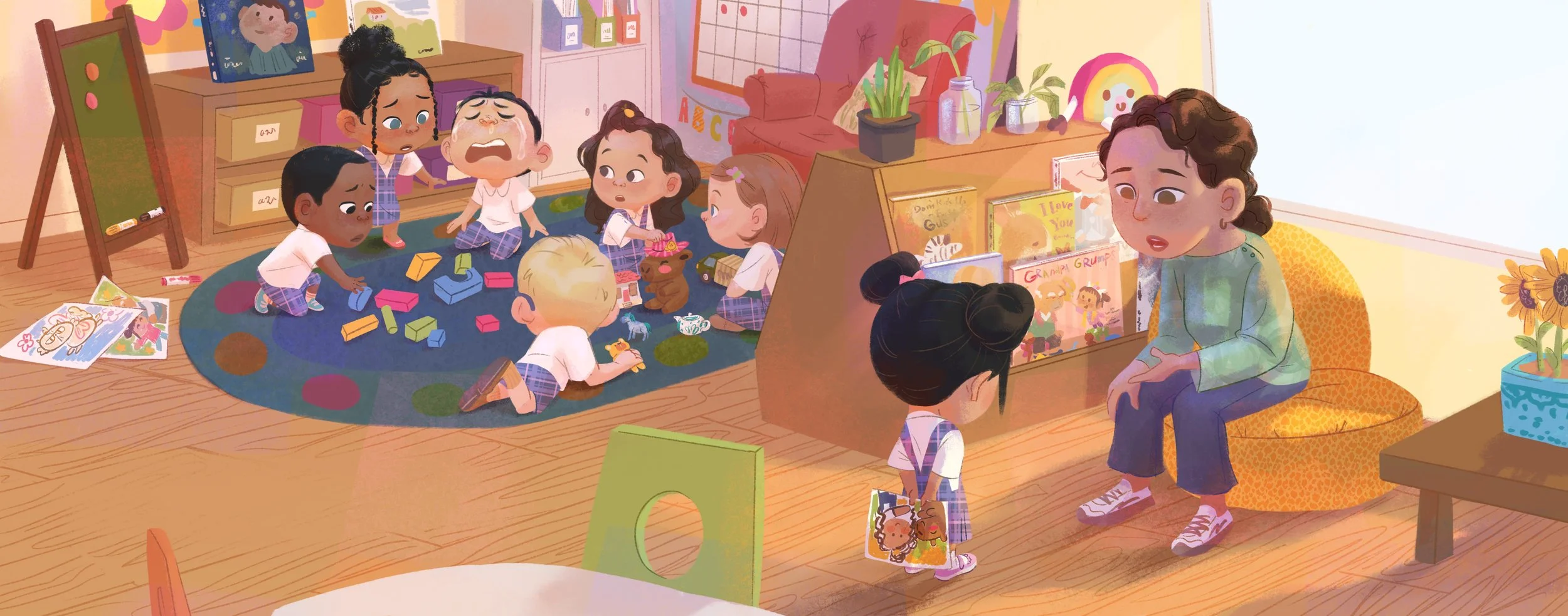 Daisy's grandpa, Yeh-Yeh, is visiting from China, just in time for her new school year. But when she starts school, she realizes that none of her friends are in her class this year! Too eager to make new friends, Daisy doesn't pay attention when she takes her classmates' turns, spills their snacks, and tumbles their towers. Making friends is hard when everyone at school is grumpy! Or are they?